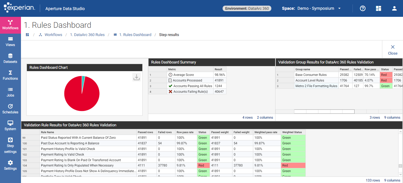 Once the data is mapped, you can execute the DataArc 360™ Rules Dashboards to see the rule results. After execution is complete, various dashboards will be populated.